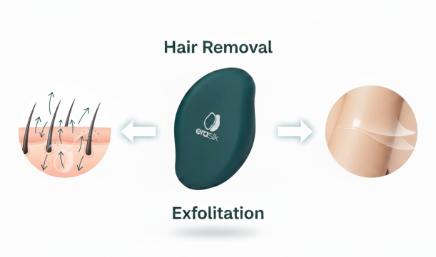 Erasilk vous fait économiser beaucoup d'argent sur les gommages exfoliants car elle vous offreles deux traitements simultanément – la même surface nano-cristalline qui enlève les poils EXFOLIE également doucement les cellules mortes de la peau, révélant lapeau douce et lisse en dessous.