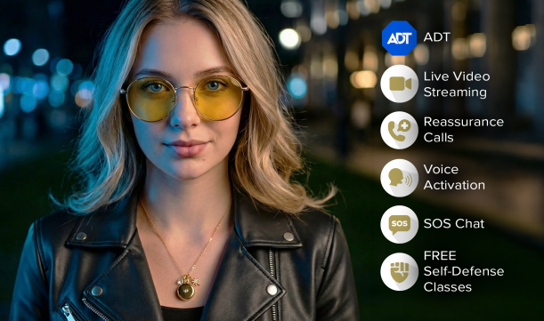- 安心コール:訓練を受けたADTセキュリティエージェントへの24時間年中無休のアクセス。彼らはあなたが安全を感じるまで電話を切らず、必要に応じてあなたの場所に助けを呼んでくれます。
